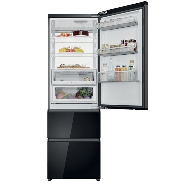 French Refrigerator Freezer, Black Glass, No-Frost, H190 x W59.7 x D60 (cm)
