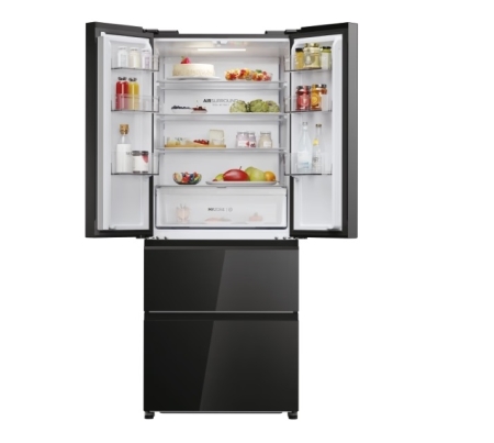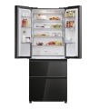 Freestanding, French Refrigerator Freezer, Black Glass, Class E, H177.5 x W70 x D68.8 (cm) 402 lt